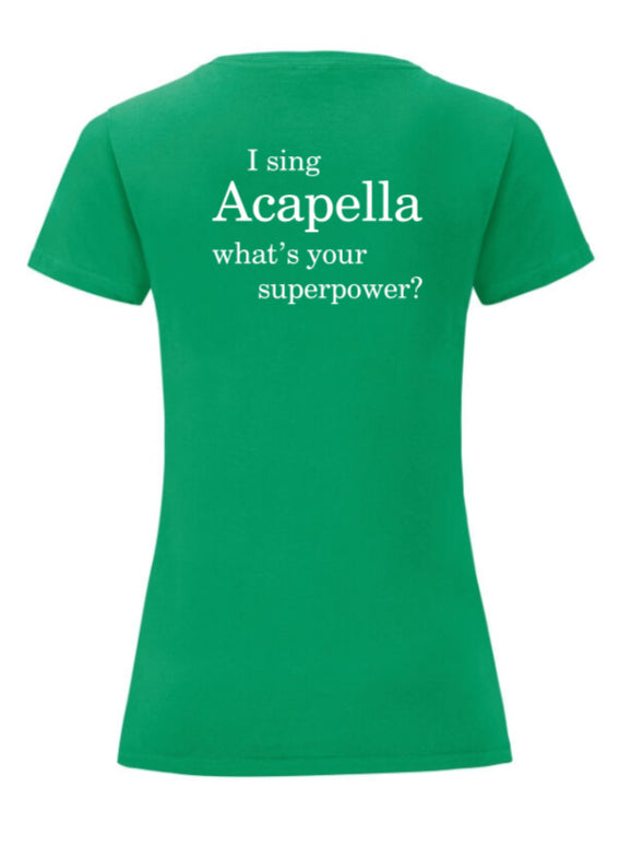 This design is available in a range of colours, 100% ringspun t-shirt showcases the LABBS logo on the front left chest, with a fun "I sing Acapella, what is your superpower" message boldly displayed on the back. Made for both ladies and gents, it’s perfect for anyone ready to sing their superpower loud and proud.