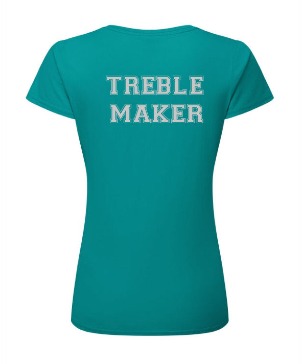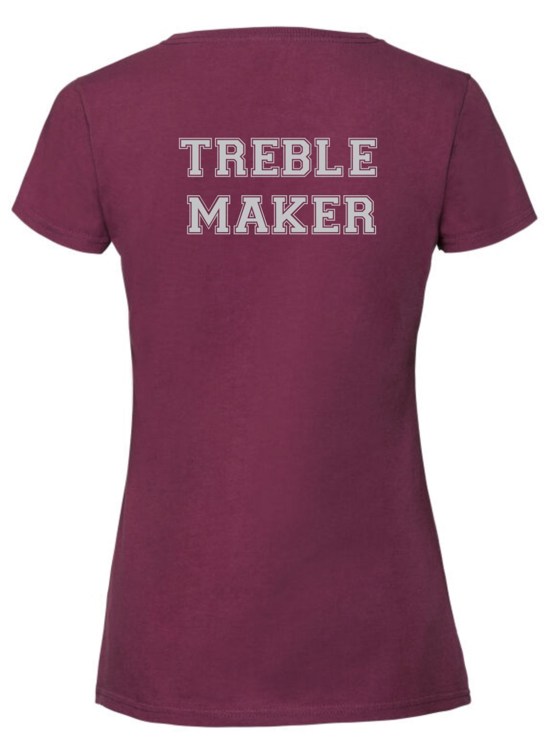 Add some sparkle to your day with this fun t-shirt! Featuring the LABBS logo on the left chest and a shimmering silver "TREBLE MAKER" glitter print on the back, it's crafted from 100% ringspun cotton. Available in both ladies' and gents' cuts for a perfect fit.